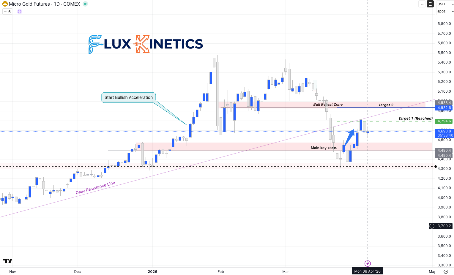 29th March 2026 : “Close above the Main Key Zone (4550$), long trade toward 4700$.”