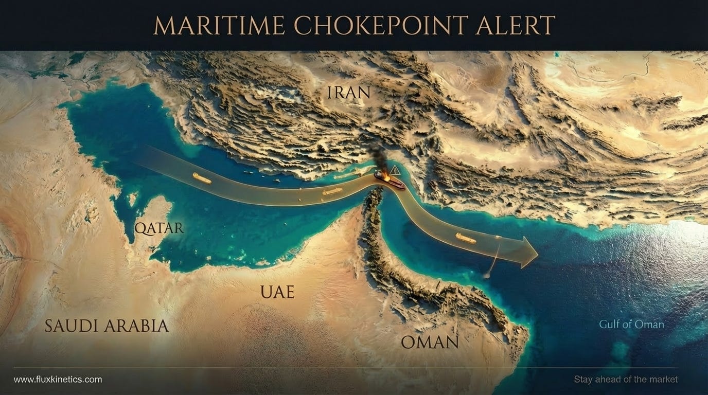 The Weekend Shock: Severe military escalation involving Iran instantly placed roughly 20% of global daily oil consumption at transit risk.