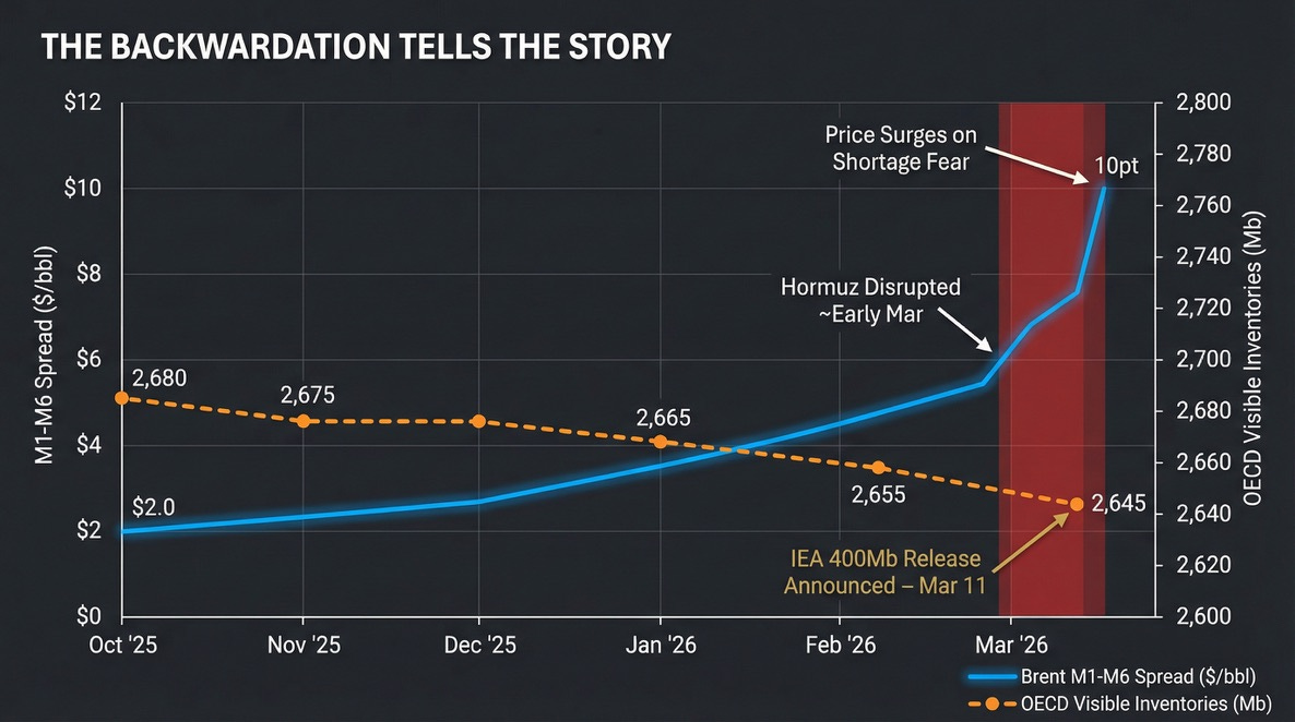 On Thursday morning, I watched Brent crude collapse toward $97 intraday after the IEA announced the largest coordinated reserve release in history. By Friday’s close, the front-month contract violently ripped back above $103. The paper market flinched at the sheer volume of 400 million barrels. Physical operators, the guys I used to work alongside, simply did the math. The Strait of Hormuz chokepoint handles 20 million barrels per day of flow, and this week it is functionally closed.