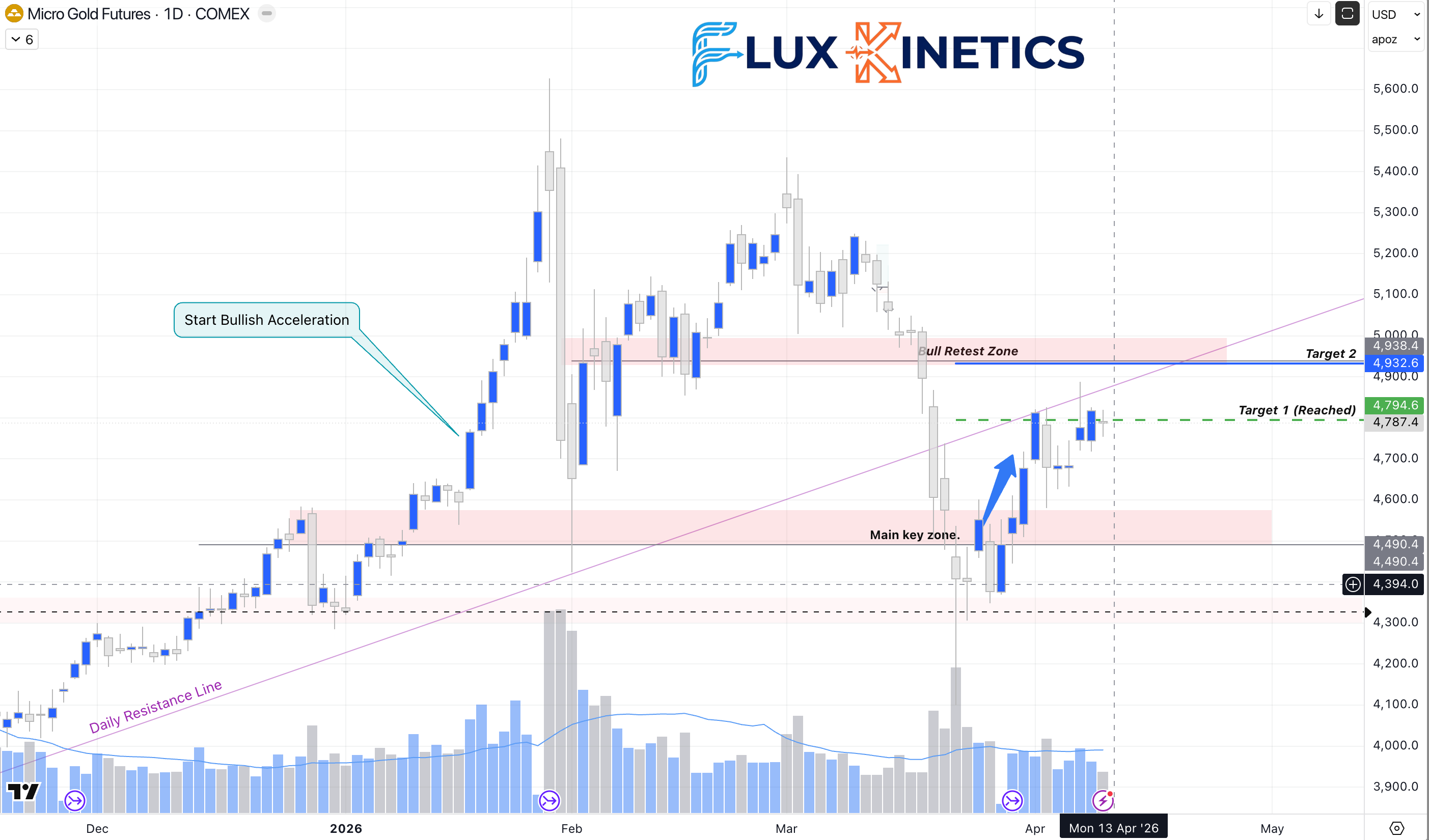 I entered a long position in gold at $4,755 (futures contract), with a stop loss below $4,690 and a target of $4,950.