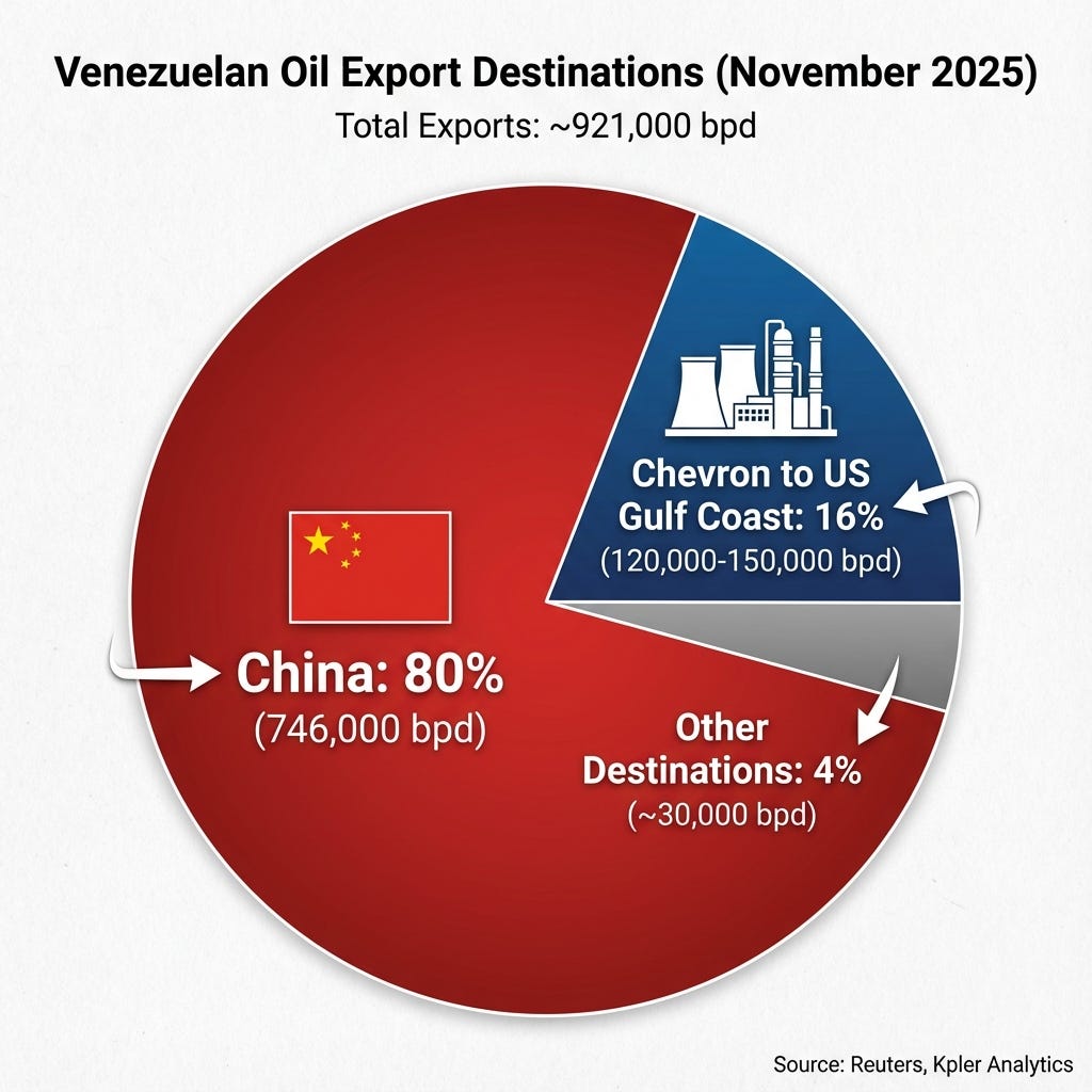 Before US intervention, China absorbed approximately 746,000 barrels per day of Venezuelan crude, 80% of total exports. That heavy, sulfur-rich crude feeds Chinese “teapot” refineries and bitumen production for infrastructure projects, creating specialised demand that can’t easily pivot to alternative suppliers.