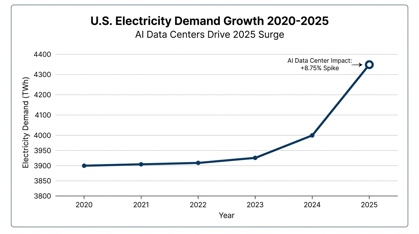 Artificial intelligence infrastructure emerged as the dominant driver of electricity demand growth across developed economies. The scale and velocity of this buildout caught even seasoned grid operators off-guard.