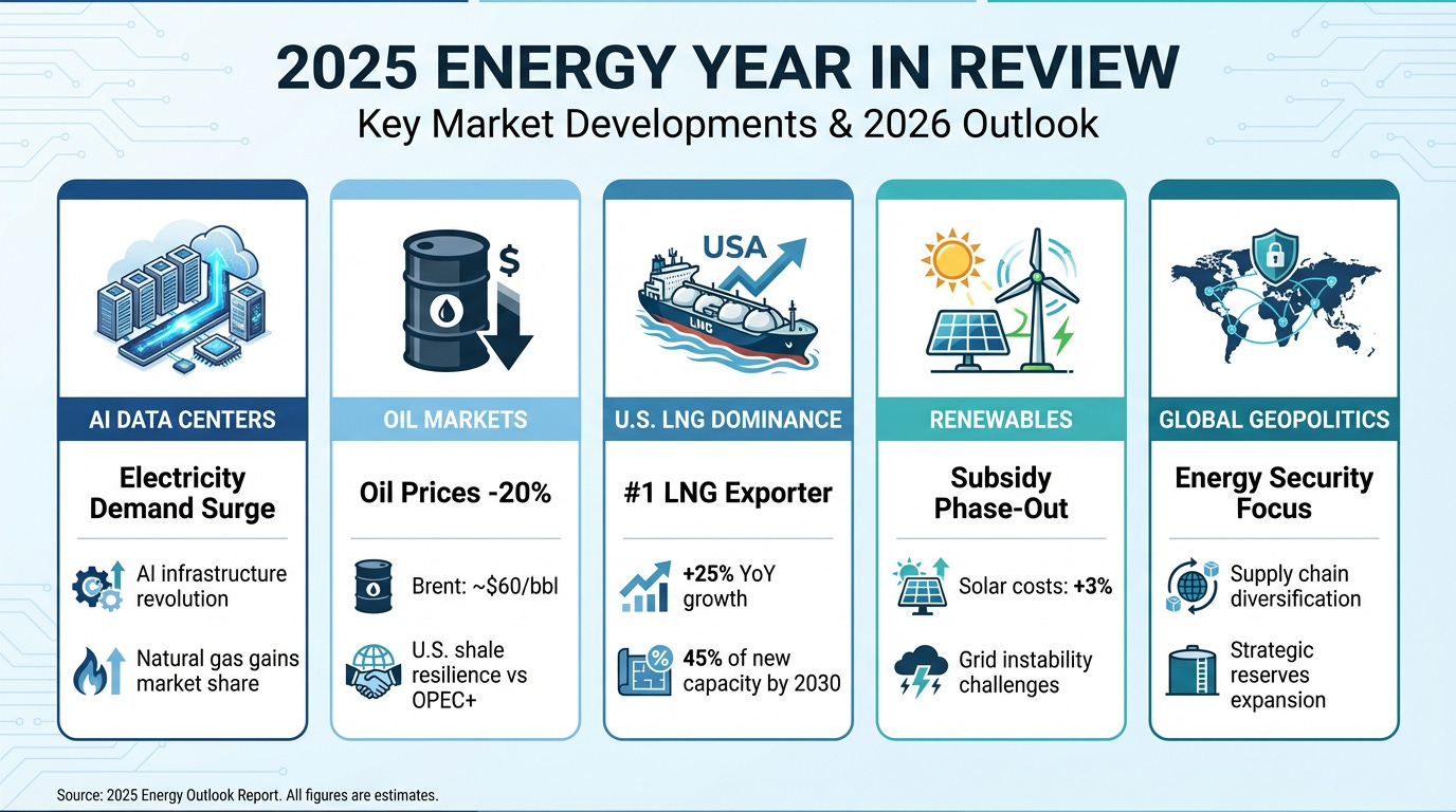 We’re entering 2026 with oil markets facing potential gluts, LNG capacity expanding rapidly, AI infrastructure straining electricity systems, subsidy regimes shifting, and fossil fuel demand proving more resilient than many projected.